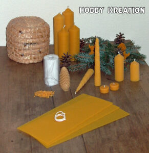 Eine weitere beliebte Variante ist das Rollen von Kerzen aus Wabenplatten aus Bienenwachs. Bei dieser Methode werden keine weiteren Hilfsmittel benötigt. Mit HAMMANN WABEN können Sie Kerzen aus reinem, naturbelassenen Bienenwachs selbst drehen.